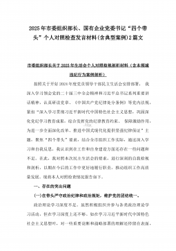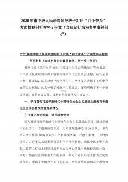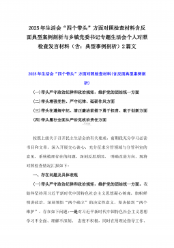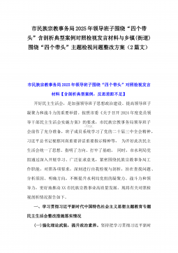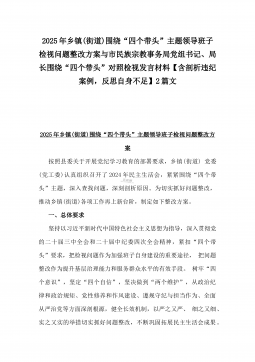 2025年乡镇(街道)围绕“四个带头”主题领导班子检视问题整改方案与市民族宗教事务局党组书记、局长围绕“四个带头”对照检视发言材料【含剖析违纪案例,反思自身不足】2篇文