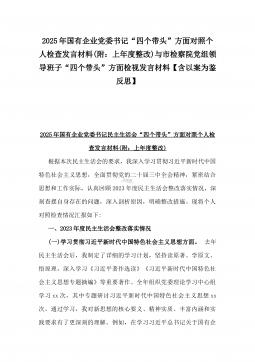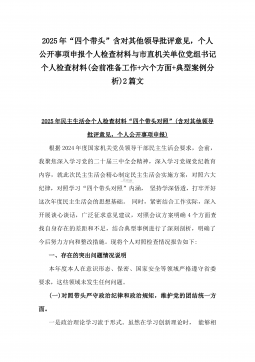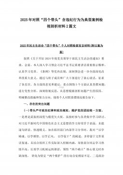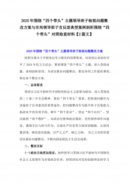 2025年乡镇(街道)围绕“四个带头”主题领导班子检视问题整改方案与市民族宗教事务局党组书记、局长围绕“四个带头”对照检视发言材料【含剖析违纪案例,反思自身不足】2篇文2025年乡镇(街道)围绕“四个带头”主题领导班子检视问题整改方案按照县委关于开展党纪学习教育的部署要求,乡镇(街道)党委(党工委)认真组织召开了2024年民主生活会,紧紧围绕“四个带头”主题,深入查找问题,深刻剖析原因。为切实抓好问题整改,推动乡镇(街道)各项工作再上新台阶,制定如下整改方案。一、总体要求坚持以习近平新时代中国特色社会主义思想为指导,深入贯彻党的二十届三中全会和二十届中纪委四次全会精神,紧扣“四个带头”要求,把...