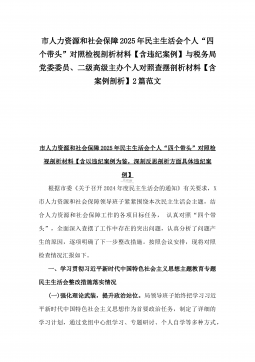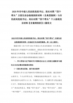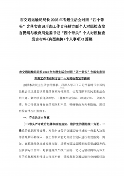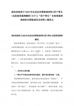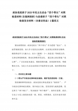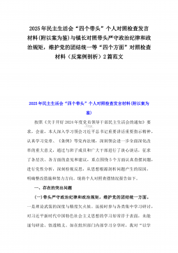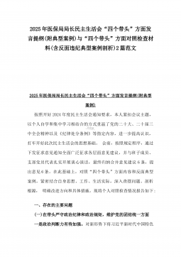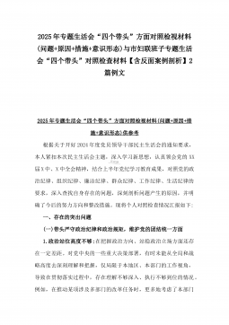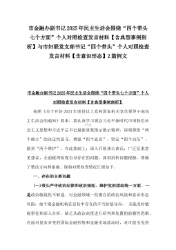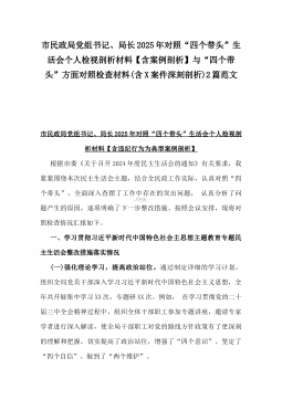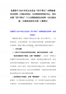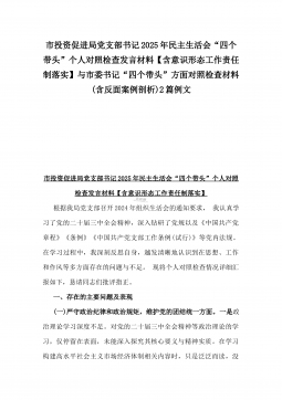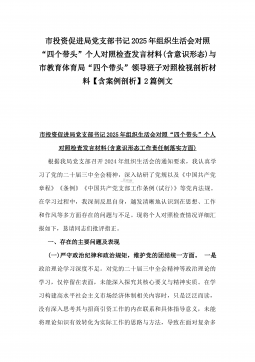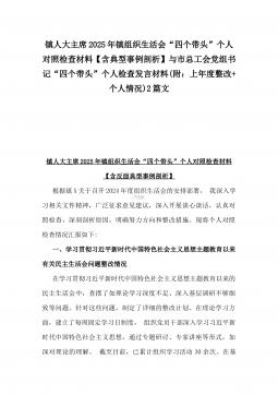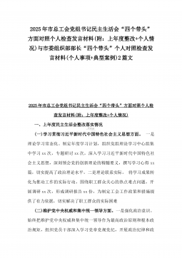 2025年市总工会党组书记民主生活会“四个带头”方面对照个人检查发言材料(附:上年度整改+个人情况)与市委组织部部长“四个带头”个人对照检查发言材料(个人事项+典型案例)2篇文