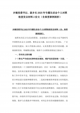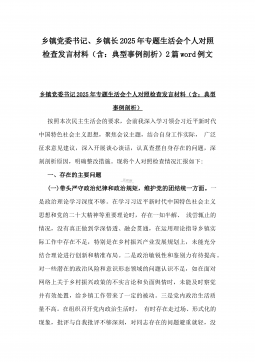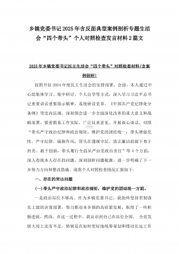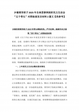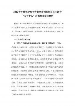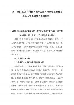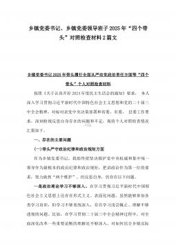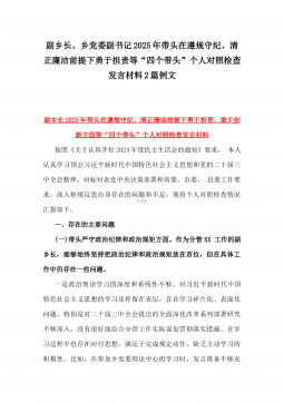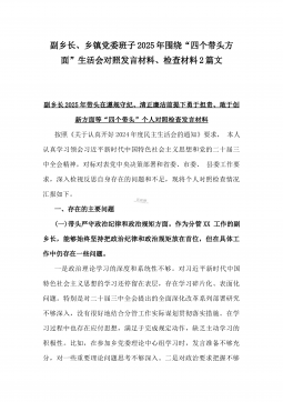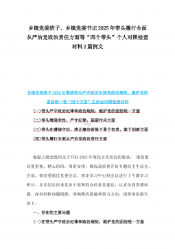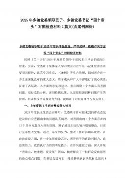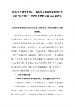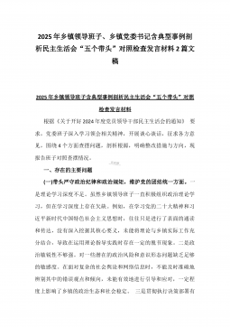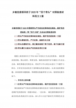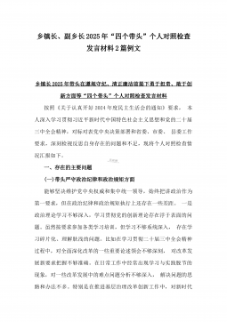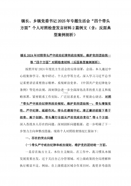 2025年镇长“四个带头”对照检查材料与乡镇领导班子“五个带头”对照检查发言材料2篇文(均含反面典型案例剖析)