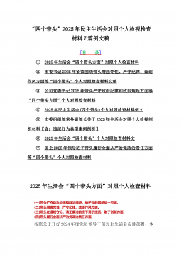 2025年民主生活会聚焦“四个带头”方面个人对照检查检视材料7篇例文(含违纪行为为典型案例,举一反三进行剖析)
