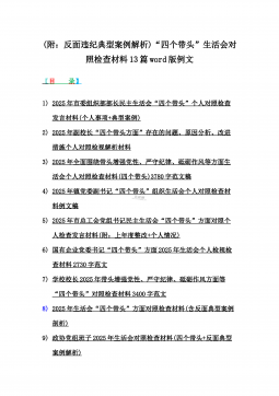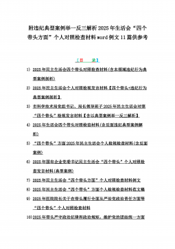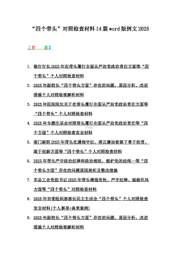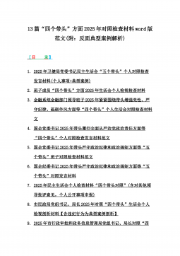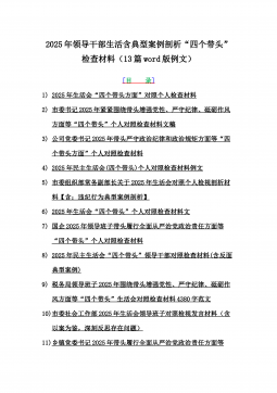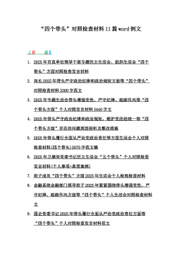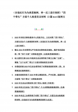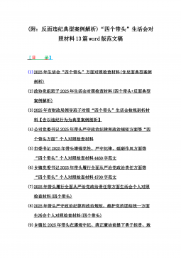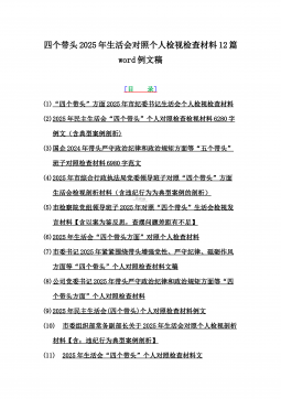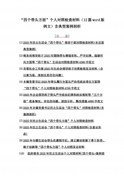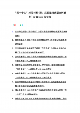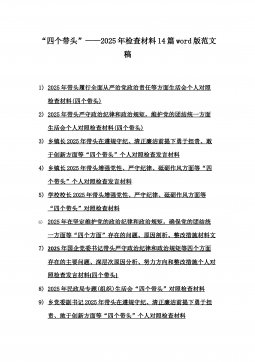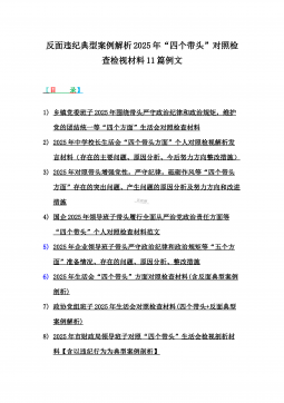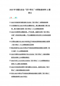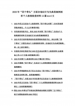 含违纪行为为典型案例,举一反三进行剖析2025年聚焦“四个带头”个人对照材料word版例文12篇供参考【目录】(1)2025年民主生活会“四个带头”个人对照检查检视材料(含典型案例剖析)(2)2025年市总工会领导班子对照“四个带头”方面生活会检视剖析材料(含违纪行为为典型案例的剖析与反思)(3)县委常委班子2025年专题生活会带头严守政治纪律和政治规矩,维护党的团结统一等“四个带头方面”对照检查材料6330字文稿(4)2025年市农业农村局党组书记、局长对照“四个带头”生活会个人检视剖析材料(含剖析典型例,反思自身不足方面)(5)2025年学校副校长关于民主生活会“四个带头”方面对照个人检视...