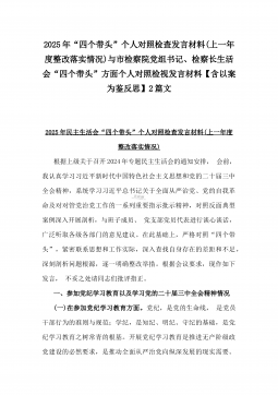 2025年“四个带头”个人对照检查发言材料(上一年度整改落实情况)与市检察院党组书记、检察长生活会“四个带头”方面个人对照检视发言材料【含以案为鉴反思】2篇文