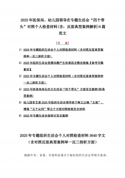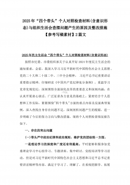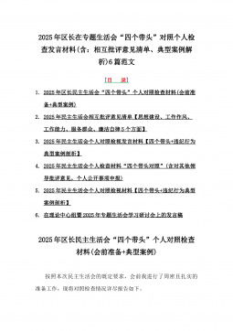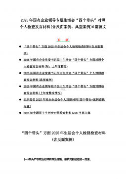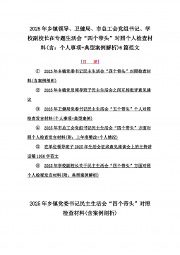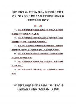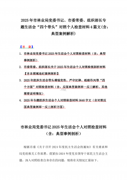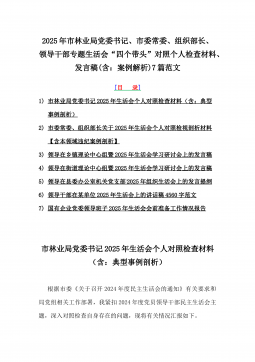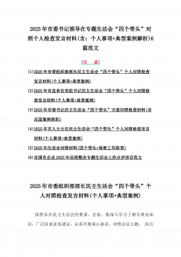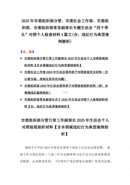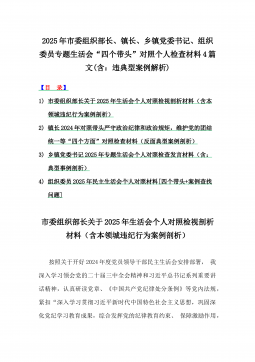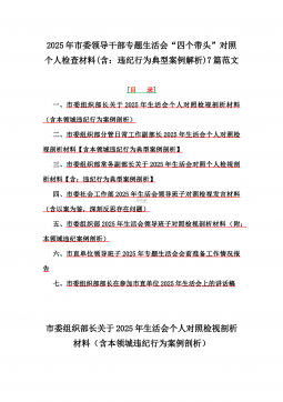 2025年市委组织部分管、市委社会工作部、市委组织部、市委组织部常务副部长专题生活会“四个带头”对照个人检查材料4篇文(含:违纪行为典型案例解析)【目录】市委组织部分管日常工作副部长2025年生活会个人对照检视剖析材料【含本领城违纪行为典型案例剖析】市委社会工作部2025年生活会领导班子对照检视发言材料(含以案为鉴,深刻反思存在问题)市委组织部2025年生活会领导班子对照检视剖析材料(附:本领域违纪案例剖析)市委组织部常务副部长关于2025年生活会对照个人检视剖析材料【含:违纪行为典型案例剖析】市委组织部分管日常工作副部长2025年生活会个人对照检视剖析材料【含本领城违纪行为典型案例剖...