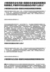 少数民族农业生态园+田园综合体建设的新路径和新模式,开展农村综合建设试点有什么意义?