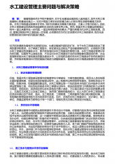水工建设管理主要问题与解决策略