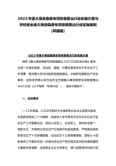 2023年重大事故隐患专项排查整治行动实施方案与学校安全重大事故隐患专项排查整治行动实施细则(两篇稿)2023年重大事故隐患专项排查整治行动实施方案按照《重大事故隐患专项排查整治2023行动总体方案》要求,为进一步落实国家、自治区、盟委、行署及委政府关于安全生产工作部署,推动重大安全风险防控措施落实,全面防范遏制生产安全事故,经政府同意从即日起在全开展重大事故隐患专项排查整治2023行动(以下简称“专项行动”),具体方案如下:一、总体要求(一)工作思路。以习近平新时代中国特色社会主义思想为指导,全面贯彻党的二十大精神,持续深入学习贯彻习近平总书记关于安全生产工作重要论述,坚持人民至上、生命至上...