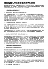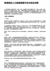 高校人力资源管理在人本理念下的发展方向 1. 人本管理理念及当下高校的发展轨迹人本主义管理是将人放在组织管理的核心地位,重视人的多层次需求和全面发展,进而,充分调动人的积极性和创造性,并将实现个人的主导需求,融合于组织目标实现的过程中的一种管理理念。这种思想的兴起,曾经一度引发了人们对它就管理效益的价值的讨论和赞同,后来,它被广泛的运用到管理实践的工作中去。1.1高校的人力资源管理缺乏科学合理的规划及其制度的不完善在高校的人力资源管理方面,由于在人员的任用、后续教育、培训方面缺乏人本管理的理念,所以,一直得不到科学合理的规划。最近几年,高校的扩建中,出现了一系列问题,师资队伍与学生的需求不成...