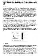 钌配合物诱导DNA断裂以及作用机理的研究综述1、引言DNA是染色体的主要化学成分,是储存、复制和传递遗传信息的物质基础,在生物体的生长、发育和繁殖等生命活动中发挥着重要的作用.DNA的双链结构对于维持遗传物质的稳定性和复制的准确性极为重要,其拓扑结构的变化与细胞凋亡和肿瘤发生密切相关.近年来,深入研究DNA的结构和功能以及金属配合物与DNA之间的相互作用成为生物无机化学的研究热点,尤其是钌配合物与DNA之间的相互作用引起了广泛关注[1~4].钌配合物具有良好的热力学稳定性,丰富的光化学、光物理和氧化还原特性,以及低毒性、易吸收并可很快排泄的特点,使其成为继铂类药物之后最有前途的抗癌药物之一.已...