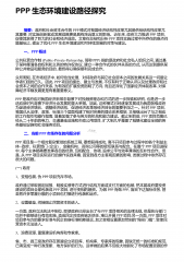 PPP生态环境建设路径探究 摘要:政府和社会资本合作的PPP模式对我国经济结构性改革尤其是供给结构性改革尤其重要,对实施创新驱动发展战略更是具有深远意义的影响。近年来,政府大力推进PPP项目,促使其获得了巨大的社会和经济成效。文章在总结和分析PPP项目实施过程中所存在的难点问题基础上,提出了优化PPP生态环境建设和可持续发展的对策与建议。 一、PPP概述公共私营合作制(Public-Private-Partnership,简称PPP)指的是政府和社会私人组织之间,通过基于某种厘清各自权利和义务的特许权协议,建立一种合作式的伙伴关系的方式,从而达到提供某种公共物品和服务的目的,最终得以确保顺...