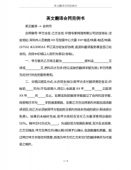 英文翻译合同范例书英文翻译合同范例书英文翻译->合同书合同编号:甲方全名:乙方全名:中国专家网络有限公司法定地址:法定地址:深圳市人民南路XX号发展中心大厦31F电话/传真:电话/传真:(0755)82209555甲乙双方经友好协商,就资料翻译服务事宜签订此合同。合同中价格以人民币为单位(含税)。一、甲方委托乙方将主题为_______________资料由__________文译成__________文,资料共计为字(终以实际的翻译字数为准),甲方同意为此交付对应的服务费用。二、交稿日期及方式:从合同生效日(即甲方支付翻译费定金日)开始的_____天内(不包括周六,周日),也就是XX年____...