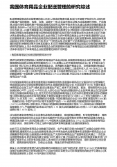 我国体育用品企业配送管理的研究综述