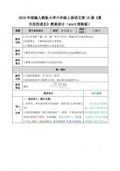 2019年部编人教版小学六年级上册语文第15课《夏天里的成长》教案