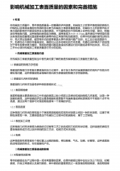 影响机械加工表面质量的因素和完善措施 0 引言在机械加工质量中,零件表面质量是一项重要的评判因素,机械加工之后零件表面层的微观几何结构以及表层金属材料性质的变化即为机械加工表面质量的表现,机械加工之后的零件由于各方面的影响并不能呈现完全光滑的表面,不可避免的在不同程度上会存在冷硬、裂纹、粗糙波纹等缺陷问题,这种缺陷的表现极为精细,通常表现为0.05~0.15mm,虽然表现不够明显但是这些表面的质量情况直接影响着机器零件的正常使用和性能表现,在零件和机器的使用过程当中,绝大部分的磨损、疲劳等形式的损害都是从零件表面问题产生的,在工业日益发展的今天,机器也在不断的向着高速化、精密化以及多功能...