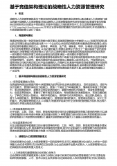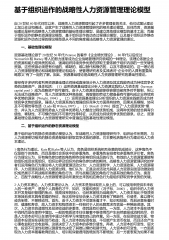 基于竞值架构理论的战略性人力资源管理研究 0 引言战略性人力资源管理就是为了解决组织的战略决策问题和其长期目标,通过建设人力资源部门建立的基于战略的人力资源管理.目前,战略性人力资源管理的研究还在初级阶段,管理学者们根据自己的经验和认知提出不同的理论,但是不同理论之间的差异性不大.本文运用竞值架构理论(CVFCompetingValuesFramework),针对企业领导的的管理能力现状进行评估研究,并对战略性人力资源管理的意义进行了阐述. 1、竞值架构理论竟值架构理论是一种新型的领导能力测评理论,是美国密歇根的大学教授Quinn和其研究团队提出的.这项理论提出的基础是北美7937个企业和...