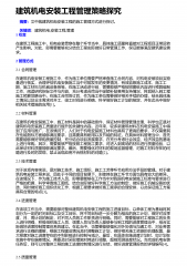 加强土建与安装工程的施工配合的措施探究 摘要:基于建筑安装工程与土建施工的配合管理,首先掌握建筑安装工程与土建施工配合的意义,其次掌握熟悉完善建筑施工设计图纸,强化技术措施,加强施工监管,采取防雷接地安装配合土建施工,通风工程安装配合土建工程等措施,从而全面阐述建筑安装工程与土建施工的配合管理重要性。 关键词:建筑安装,安装工程,土建施工,配合管理进入21世纪以来,社会主义现代化建设继续深入推进,进一步推动了我国建筑行业的蓬勃发展。由于建筑工程由多个内容组成,因此存在一定的复杂性。例如,建筑安装工程和土建工程,作为建设项目中必不可少的重要环节,必须在相互配合的基础上做好相关工作,目...