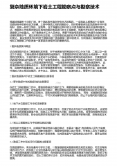 高层建筑工程地质勘查工作探究地质勘查是地质勘查工作的简称,是根据经济建设、国防建设和科学技术发展的需要,对一定地区内的岩石、地层构造、矿产、地下水、地貌等地质情况进行重点并有所不同的调查研究工作。工程地质是研究人类工程建设活动与自然地质环境相互作用和相互影响的一门地球科学,起源于20世纪初,20世纪50年代以后在我国才有了长足的进步和发展。而今,工程地质勘查已成为工程建设中不可缺少的一个重要组成部分[1,2].在城市高层建筑的建设过程中,地质勘查是最基础也是最重要的环节之一,只有认真地做好工程地质勘查工作,确保地质勘查的准确性和全面性,才能保证基础处理及结构施工方案的合理性,最终保证建筑施工过...
