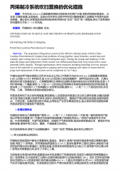 丙烯制冷系统吹扫置换的优化措施 摘要:兰州石化460kt/a乙烯装置丙烯制冷系统各冷剂用户分散,导致丙烯系统管道长、分支多,又循环嵌套,走势复杂。此部分在开停车过程中存在吹扫置换难度大,容易留下死角引起安全隐患。通过优化,“”“”采取增加回收泵回收系统内物料及正吹反吹等3项措施,保证了该系统的吹扫置换工作在2~3d内完成。 关键词:丙烯制冷;吹扫置换;优化;OPTIMIZATIONOFSTARTUPANDSHUTDOWNOFPROPYLENEREFRIGERATIONSYSTEMQinHailiangMaShilinJiHongfengPetroChinaLanzhouPetrochemic...