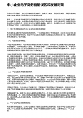 贸易类中小企业网络营销发展问题与思路一、引言.从广义上讲,电子商务包括电子邮件、电子数据交换、电子资金转帐和信用卡交易等一系列应用及支持电子商务的信息基础设施;从狭义上讲,电子商务仅指企业之间、企业与消费者之间的电子交易.对企业而言是指使用因特网(内联网、外联网和因特网)进行企业资源管理ERP(人事、财务、生产、销售等)、客户关系管理ERP(售前、售中、售后)、销售渠道管理SFA(分销商、代理商)、供应链管理Supply-Chain(供应商、生产商、消费者)等商业活动.它是利用简单、快捷、低成本的电子通信方式或电子技术手段,把传统的销售、购物渠道转移到互联网上来,打破国家与地区之间有形无形的壁...