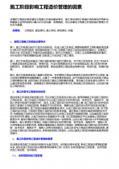 施工阶段影响工程造价管理的因素合理的工程造价是在建设工程施工阶段由建设单位、施工单位或有工程造价咨询单位共同参与,根据施工合同约定的计量计价办法沟通、协商确定。所以在建设工程施工阶段的造价管理工作也尤为重要。 关键词:工程造价;建设单位;施工单位;咨询单位;沟通;1 、建筑工程施工阶段的主要特点第一,施工阶段是以执行计划为主的阶段。在进入施工阶段后,需要根据建筑工程的编报项目建议书和可行性研究报告,制定具体的施工计划,在明确了建设工程目标规划的基础上,完善施工项目计划,而在制定工作基本完成的基础上,就可以开展施工。在施工企业需要根据实际情况,对计划进行不断的调整和完善,因此施工计划决定了施工...