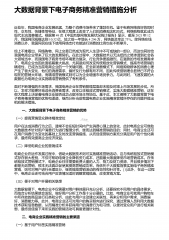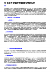 电子商务营销中大数据技术的应用引言:在当前的社会发展中,互联网技术的快速发展,推动了云存储、云平台与5G技术的进步,使得社会公众的思维理念与消费行为受到了较大的影响。特别是在进入二十一世纪以后,电子商务在人们的消费行为中占据着十分重要的地位。而在电子商务中,消费者能够借助互联网平台,自主的进行商品与服务的选购,消费者的网站浏览行为、购买行为等,都能够将个人的消费习惯反映出来,大数据技术能够就是通过对其消费行为进行分析,进行归纳分析,为营销方案的制定提供指导。所以说,在当前的电子商务营销中,应该将大数据技术的作用发挥出来,收集消费者的网络消费数据,实现营销水平的提升。 一、大数据与电子商务营销概...
