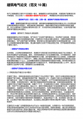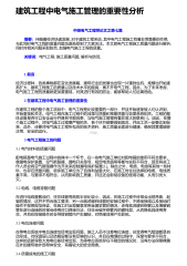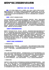 建筑电气施工质量通病与防治策略 建筑电气论文(范文10篇)之第三篇 摘要:电气工程施工是建筑工程中十分重要的一部分,在施工人员进行工程施工的过程中需要经过具体的分析工作以使得电气工程施工的过程更加的顺利,质量得以保证。施工的过程中要做好前期的规划、施工中的控制以及后期的检查的工作。按照施工的相关标准进行作业施工,同时也要在施工的过程中做好质量控制的工作,提升电气工程的质量与效果,以促进建筑行业的更好地发展。 关键词:建筑电气,质量通病,防治策略在当今社会的发展过程中,各项科学技术的不断的发展,使得信息化、网络化、智能化的程度越来越高,其也在现代化的发展中起到了越来越重要的作用。在电气施工...
