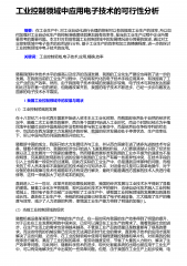 工业控制领域中应用电子技术的可行性分析 摘要:在工业生产中,对工业自动化进行合理的控制可以有效提高工业生产的效率,所以如何加强对工业自动化生产的控制准确度使其更加具有效率性,是当前工业生产过程中企业所需要思考的重要问题。本文针对目前我国工业控制领域中的发展情况进行简要的叙述,通过对工业控制领域中电子技术的应用进行分析,基于工业生产的效率和加工的精确程度,进一步的探讨工业控制领域中电子技术的应用。 关键词:工业控制领域,电子技术,应用,精确,效率随着我国科学技术水平的提高以及经济的迅速发展,我国的工业化生产建设也得到了进一步的发展。在我国当前的工业生产过程中,已经将现代化的电子技术手段应用其...