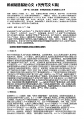 机械制造基础论文(优秀范文5篇) 【第一篇】论文题目:现代机械制造工艺与精密加工技术摘要:精密加工在国防、轻工、核能、高精密仪表仪器、航空航天、惯导平台、光学零件等领域中占有重要地位,加工范畴主要包括精整加工、光整加工、微细加工等,反映了机械制造技术的发展前沿,加工精度的允许误差为0.1um1um,Ⅱ高于5级精度,划分界限具有相对性。现代制造工艺融合了现代管理、材料、自动化、电子信息、计算机、光电子、微电子、机械工程等技术,有助于实现高效灵活、清洁节能、精确优质生产,提高现代机械加工精度能改善产品质量与性能、零件互换性,进而提升产品装配效率。关键词:精密;制造;加工;机械;机械制造是工业部门...