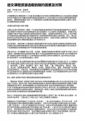 语文课程资源选取的制约因素及对策来源:学术堂作者:周老师发布于:2014-11-18共5354字[内容概要]语文课程资源十分丰富,有效地整合与开发语文课程资源势在必行,但当前语文课堂教学中的"伪整合开发"现象与新课标的理念背道而驰,令人担忧.整合与开发语文课程资源受到课程目标、课题类别和课堂"动态"三个因素的制约,这就要求教师具备相应的素质,处理好几组关系,构建绿色的生态课堂.[关键词]资源整合制约策略长期以来,语文学科教学一直是一个比较封闭的系统,教师拘泥于教材和既定的教学设计,忽略了语文课程作为母语学习得天独厚的条件,缺乏资源意识,不大注意学习资源的整合、利用和开发,对潜藏于课内外有益于提...