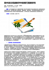 高中语文阅读教学中的精巧调度研究来源:语文教学通讯・D刊作者:刘尊东发布于:2018-12-01共4251字 摘要:高中阅读教学设计注重各种调度,符合学生阅读学习成长的基本诉求,具有极高的适合度和针对性。教师要注意从设悬调度、情境调度、鉴赏调度、训练调度等角度展开探索,关注阅读信息的传递,促进学生阅读信息的接受、思考和反馈,实现阅读信息认知的顺利内化。 关键词:语文阅读;三趣;环节;阅读是学生的个性化学习行为,高中学生有一定的阅读基础和能力,教师在阅读教学设计时,需要尊重阅读学习规律,以激发阅读情趣为出发点,针对阅读的不同阶段展开相关操作,以提升阅读学习的有效性。阅读学习大多需要经历几个环...