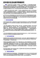 初中音乐生活化教学策略探究 摘要:音乐是生活中不可或缺的一种调味剂。音乐能够缓解一个人的紧张情绪,音乐能够愉悦一个人的苦闷心情,音乐能够坚定一个人的消沉意志。正因为如此,在初中音乐教学过程中,教师要将音乐教学生活化,据此让学生学会运用音乐舒缓情绪、愉悦心情以及坚定信念等。本文将在借鉴相关理论研究成果的基础上,“围绕创设生活化的教学情景、设计生活化的教学活动以”及布置生活化的课后作业等三个方面,浅显论述初中音乐生活化教学的一些有效策略。 冼星海说:“音乐,”是生活中的一股清泉。无论是让人激情澎湃的音乐,还是让人心旷神怡的音乐,或是让人驰思遐想的音乐等,都与一个人的现实生活紧密相连。正因为如此,...