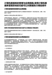 计算机数据库的管理与应用措施,使用计算机数据库管理系统的功能可以对数据执行哪些操作