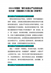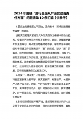 2024年围绕“履行全面从严治党政治责任,践行宗旨、服务人民,学习贯彻新时代中国特色社会主义思想3个方面”存在问题清单60条汇编【供参考】