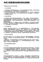 市政道路桥梁工程项目施工管理影响因素与对策 1 前言随着我国经济社会的发展,城市化进程也不断加快,市政道路桥梁工程不仅有效的缓解了城市的交通压力,也为城市各项事业的发展带来了便利。但是现代市政道路桥梁的施工规模越来越大,在施工过程中也为民众带来了众多不便,其施工中涉及的管理因素也众多,一旦发生问题,将威胁到人们的生命安全。因此,加强市政道路桥梁施工过程的管理工作,提升施工管理水平,成为防患于未然的重要途径。 2 市政道路桥梁工程项目管理概述市政道路桥梁项目施工过程的管理是指,在城市建设过程中,对诸如城市给排水工程、城市道路、桥梁工程等不可缺少的施工工程进行的管理工作,是一种协调施工组织设计与...