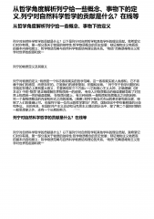 从哲学角度解析列宁给一些概念、事物下的定义,列宁对自然科学哲学的贡献是什么?在线等从哲学角度解析列宁给一些概念、事物下的定义列宁对自然科学哲学的贡献是什么?以下是列宁对自然哲学和其他学科的理论贡献。我希望它们对你有用。第一部分是关于物质的独特性:哲学物质概念的历史发展;辩证唯物主义物质观“”的基本内容和意义;哲学物质范畴与自然科学物质结构理论的关系。物质范畴是唯物主义哲学对世界的起源和统一列宁的物质定义及其意义列宁对物质的定义:“物质是一个标志客观现实的哲学范畴。这一客观现实被人类感知。它不依”赖于我们的感觉,而是存在的。它被我们的感受复制、拍摄和反映。列宁关于哲学问题的科学规定在理论上具有重...