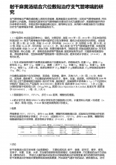 射干麻黄汤结合穴位敷贴治疗支气管哮喘的研究支气管哮喘正严重的威胁着人类的生命健康,据调查显示全球约有1亿的支气管哮喘患者,并且呈逐年上升趋势。目前现代医学对支气管哮喘的主要治疗方式为激素治疗,但激素的副作用令许多患者不耐受。本院运用中医基础理论知识,使用辨证论治,采用射干麻黄汤联合穴位敷贴治疗支气管哮喘发作期,现将效果报告如下。1资料与方法1.1一般资料本试验采用单中心、随机、对照研究,选取2013年1月~2014年1月在本院呼吸科就诊的101例支气管哮喘发作期中医辨证分型为寒哮者,随机分成试验组与对照组。试验组51例,男31例,女20例,年龄35~65岁,平均年龄(44.0±3.3)岁;对照...