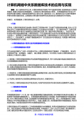 计算机网络中关系数据库技术的应用与实现 摘要:进入信息化时代以来,计算机网络技术得到了突飞猛进的发展,但其网络设计过程异常复杂,需建立相应的关系数据库。文章结合计算机网络设计需求、关系数据库技术在设计中的应用功能与原理,对具体的软硬件设计进行分析,最后结合XML语言探讨设计过程中数据库存储与转换功能的实现,以期提高计算机操作的便利性及其实际运行的稳定性与可靠性。关键词:关系数据库;计算机网络设计;应用; 0 引言近年来,计算机网络系统日益成熟,既实现了资源的共享,又加速了信息的有效传播,在向人们日常生活与工作提供便利的同时极大地推进了社会的进步与发展[1]。在计算机网络下,互联互通系统架构...