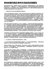 革命时期马锡五审判方式的历史局限性延安时期,“”陕甘宁边区一度被誉为新民主主义的试验区,特别是在廉洁执法上,“创造了著名的马”锡五审判方式,一直被边区广大人民群众所拥护和支持。但是不容忽视的是,诞生于革命时期的马锡五审判方式,必然或多或少存在一定的历史局限性,因此,今天我们在继承和发扬的同时,必须辩证看待马锡五的审判方式,进行理性的分析。一、马锡五审判方式完全成为直接的政治体现形式《陕甘宁边区高等法院工作报告》中指出:边区司法机关审判方式主要有五种:用谈话的方式来审讯,并且允许群众旁听;陪审员从群众中选出,有补充事实权利,但最后的判决权属于法官;法官下乡就地审判;设立巡回法庭。我们可以看出陕甘...