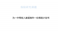 保险研究课题为一中等收入家庭制作一份寿险计划书什么叫寿险计划书保险计划书是指保险从业人员根据客户自身财务状况和理财要求,为客户推荐合适的保险产品,设计最佳的投保方案,不仅考虑现在,也设想未来,不仅考虑自己,也为全家着想。为客户谋求最大保险利益,同时又有助于客户理解和接受保险产品的一种文字材料。为何制作寿险计划书甲乙类法定报告发病总人数:308万包括(肺结核、细菌性和阿米巴性痢疾、艾滋病、流行性出血热病、麻疹、流感……)其中每人平均1年的医疗费用为2851元意外事故发生情况①死亡人数:58523②直接造成了10.75亿元的损失,当然还有火灾、溺水等等意外事故风险无处不在,为家人购买一份周详的保...