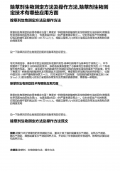 除草剂生物测定方法及操作方法,除草剂生物测定技术有哪些应用方面
