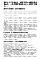 浅谈公共关系学在人力资源管理的作用,如果你读本科,人力资源管理专业与公共关系专业相似。...