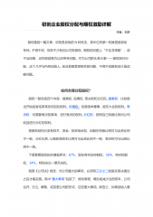 创业初期公司股权结构的设计股权分配是公司稳定的基石.一般而言,创业初期股权分配比较明确,结构比较单一,几个投资人按照出资多少分得相应的股权。但是,随着企业的发展,必然有进有出,必然在分配上会产生种种利益冲突。同时,实际中,存在许多隐名股东干股等特殊股权,这些不确定因素更加剧了公司运作的风险。当公司运作后,各种内部矛盾凸现,在矛盾中股东维护自身利益的依据就是股权比例和股东权利。所以,实践中许多中小投资者忽视股权比例和股东权利的调整,最后在公司内部矛盾中陷于进退两难的境地。而这种局面也把公司推向风险损失的边缘。因此,合理的股权结构是公司稳定的基石。一、股权结构不是简单的股权比例许多投资者都知道,股...