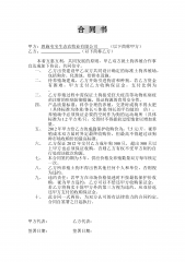 合同书甲方:恩施屯宝生态农牧业有限公司(以下简称甲方)乙方:(以下简称乙方)本着互惠互利,共同发展的原则,甲乙双方就土狗养殖合作事宜达成如下协议,共同信守。一、乙方出资建设甲乙双方共同设计确定的标准土狗养殖场,包括狗舍、化粪池、给排水设施。二、待养殖场建成,乙方开始引进狗苗和种狗,若乙方资金有困难,甲方支付乙方收购保证金,支付比例为。三、乙方养殖过程中需保证土狗接受狂犬疫苗等动物疾病疫苗注射的疾病防御措施,保证狗源的食用安全性。四、产品质量标准:科学合理的养殖,交货时成狗不得太肥(具体标准为体重/体长≤体重/体长的平均值的倍),养殖场中必须保证必要的空间作为狗的运动场所(具体标准为1.2平方米...