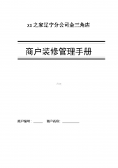 xx之家辽宁分公司金三角店商户装修管理手册商户编号:商户名称:1商户装修须知一、装修商户报审材料1、装修方案(装修单位提供):装修内容、工序安排、工期计划表。2、所需图纸(装修单位提供):彩色装修效果图(外立面、门头)、平面布置图、门头设计图、吊顶设计图、电路平面图、电路系统图(回路数量、开关数量及大小、总用电量)、空调系统图、消防系统图及施工图纸。3、装修资质(施工单位提供):营业执照、组织机构代码证、税务登记证、法人身份证、建委审发的装饰装修二级以上(含二级)资质证书,上述均提供复印件并加盖公章。4、人员材料(施工单位提供):电工身份证、电工操作证、施工人员身份证复印件及意外保险证明。5、...
