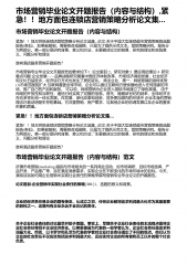 市场营销毕业论文开题报告(内容与结构),紧急!!地方面包连锁店营销策略分析论文集...市场营销毕业论文开题报告(内容与结构)紧急!!地方烘焙连锁店营销策略分析论文选集...论文:关于中国大型连锁超市营销策略的选题报告(类似),如果被复制,需要修改或删除,只是为了提供示范文本。营销策略研究。报告分为两部分。第一部分是研究背景、意义和方法,主要描述论文的背景、研究的理论和实践意义、问题分析和理论谁有酒店服务营销开题报告?市场营销专业毕业论文开题报告的要求如下:1.论文题目:2。研究对象:3.要应用的理论:4.研究重点问题:——企业发展品牌战略研究随着中国经济体制改革,市场经济得到发展,社会经济和文...