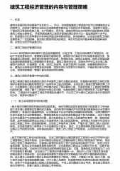建筑工程经济管理的内容与管理策略一、引言建筑业是国民经济的重要产业支柱之一。所以,如何提高建筑工程效益不仅可以增强建筑企业的竞争力,还促进了建筑企业的长远发展和有效的保证了国民经济平稳发展。而建筑工程是一个复杂而又繁琐的系统工程,生产周期长,受环境、国家政策和企业内部等方面的影响打算是建筑工程的主要特征。尽管我国的建筑工程经济管理的理论研究可以一直追溯到两千多年以前,但是现如今仍然有着许许多多的问题没有得到实际的、有效的解决,这也就给建筑工程的发展带来了一定的阻碍,因此我们要按照相关的规定,有针对性的对问题采取有效的解决措施,实现企业经济利益最大化。二、建筑工程经济管理的内容IS09000系列...
