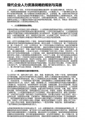 现代企业人力资源战略的规划与完善人类社会迈入21世纪,科学技术的迅猛发展推动着世界一体化趋势日臻形成,任何企业、组织、民族和国家都面临着一体化带来新的机遇和挑战。人们普遍认为,一个组织要在全球化竞争中求得生存和发展,除了必要的财力和物质设备以外,必须有高、精、尖的科学技术和先进的管理方法,而这些先进的技术和管理模式只有人,特别是高素质的人才能够创造出来,并结合组织内外的具体情况运用于生产和经营中,为组织赢得竞争优势。但现实中,对人力资源的高度关注并投入了大量的时间和财力却没有获得应有的回报。笔者认为,导致这一具有共性问题的首要原因是人力资源规划残缺或无效。 一、人力资源规划的必要性。管理专家...