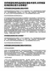 农药残留检测样品的前处理技术探究,农药残留检测的预处理方法有哪些?