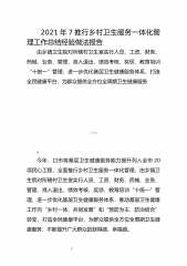 2021年7推行乡村卫生服务一体化管理工作总结经验做法报告