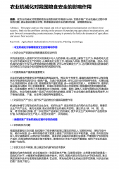 农业机械化对我国粮食安全的影响作用摘要:就农业机械化对我国粮食安全的影响和作用进行分析,发现在推广农业机械化过程中存在的问题,提出相应的解决对策,希望能够促进农业的更好发展、保障粮食安全。Abstract:ThispaperanalyzestheimpactandroleofagriculturalmechanizationonChina'sfoodsecurity,findsouttheproblemsexistingintheprocessofpopularizingagriculturalmechanization,andputsforwardcorrespondingcounterme...